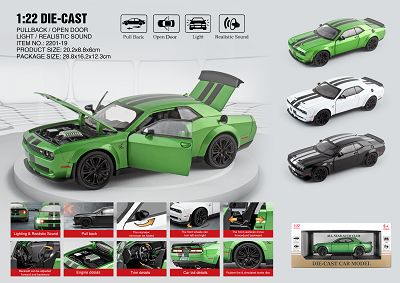 1:22 地狱猫合金模型+支架底座4开门,四轮避震,前轮带转向,后轮带回力,带仿真声光,三挡开关,配内饰白色,黑色,绿色3色混装