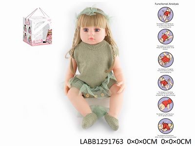 55cm重生娃娃软胶高仿真婴儿娃娃(假发套)带奶瓶,磁性奶嘴,尿布,出生卡