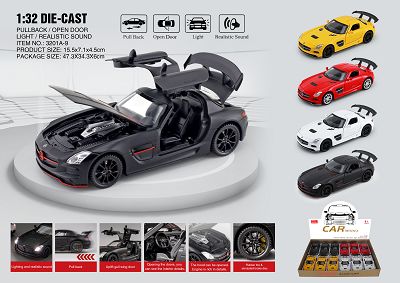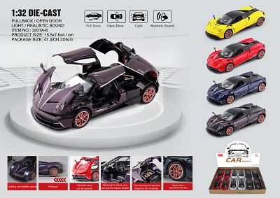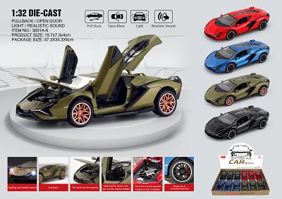 1;32th pull back car(metal) with light and music,open door,12pcs