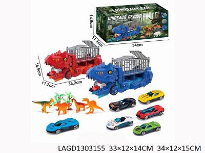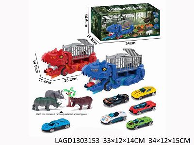 Dinosaur devours transport vehicle / 3 alloy sliding cars / four dinosaurs / grass 2 / egg slot