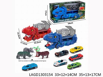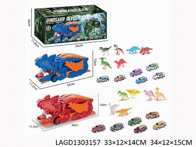 Swallowing storage vehicle/3 alloy sliding vehicles/3 dinosaurs/one DIY sticker